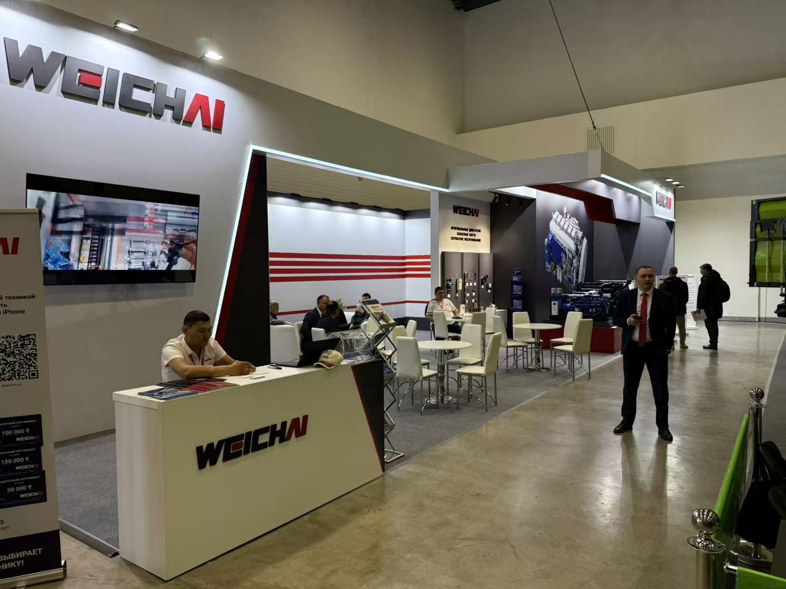 На стенде Weichai были представлены современные двигатели и силовые установки , используемые в сельскохозяйственной технике , коммерческом и специальном транспорте . Посетители выставки смогли ознакомиться с преимуществами продукции Weichai - высокой производительностью и надежностью .
